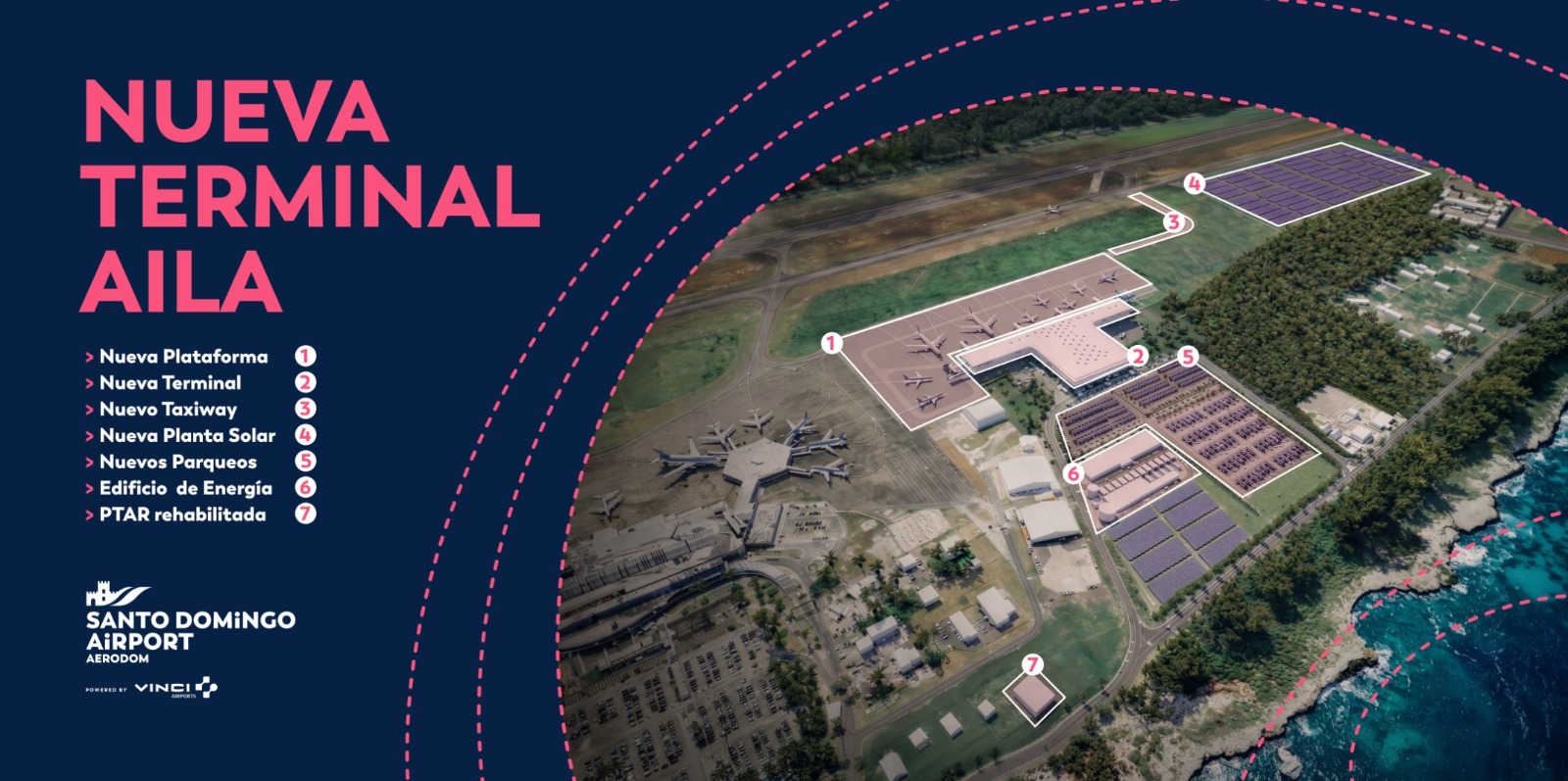 La nueva terminal operará de forma independiente a la existente y tendrá capacidad para acoger hasta cuatro millones de pasajeros adicionales por año, fortaleciendo la posición del AILA como uno de los principales hubs aéreos del Caribe. Su diseño arquitectónico moderno ha sido concebido para priorizar la eficiencia operativa, la flexibilidad y una experiencia de pasajero significativamente mejorada. Como pilar de su enfoque de sostenibilidad, la terminal integrará un Centro de Energía alimentado por una nueva planta de energía solar, reforzando el compromiso de AERODOM y VINCI Airports con la sostenibilidad ambiental y la eficiencia energética.