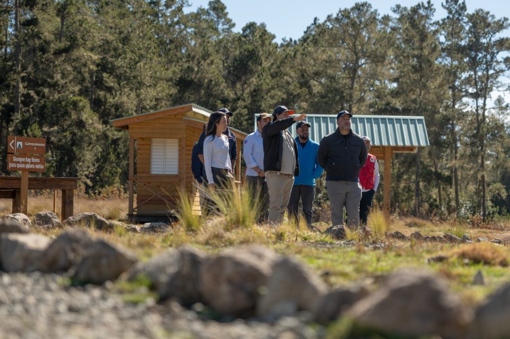Durante el recorrido, el arquitecto Juan Lebrón, quien es parte del equipo de Propagas y responsable del diseño y ejecución de la obra, explicó el concepto integral del proyecto, concebido bajo estándares de clase internacional y adaptado a las condiciones ambientales de Valle Nuevo y al uso del público del país. Detalló que la infraestructura fue diseñada para minimizar el impacto sobre el suelo y la vegetación, mediante plataformas elevadas, senderos definidos y una distribución que favorece la organización del campamento y la protección del entorno.