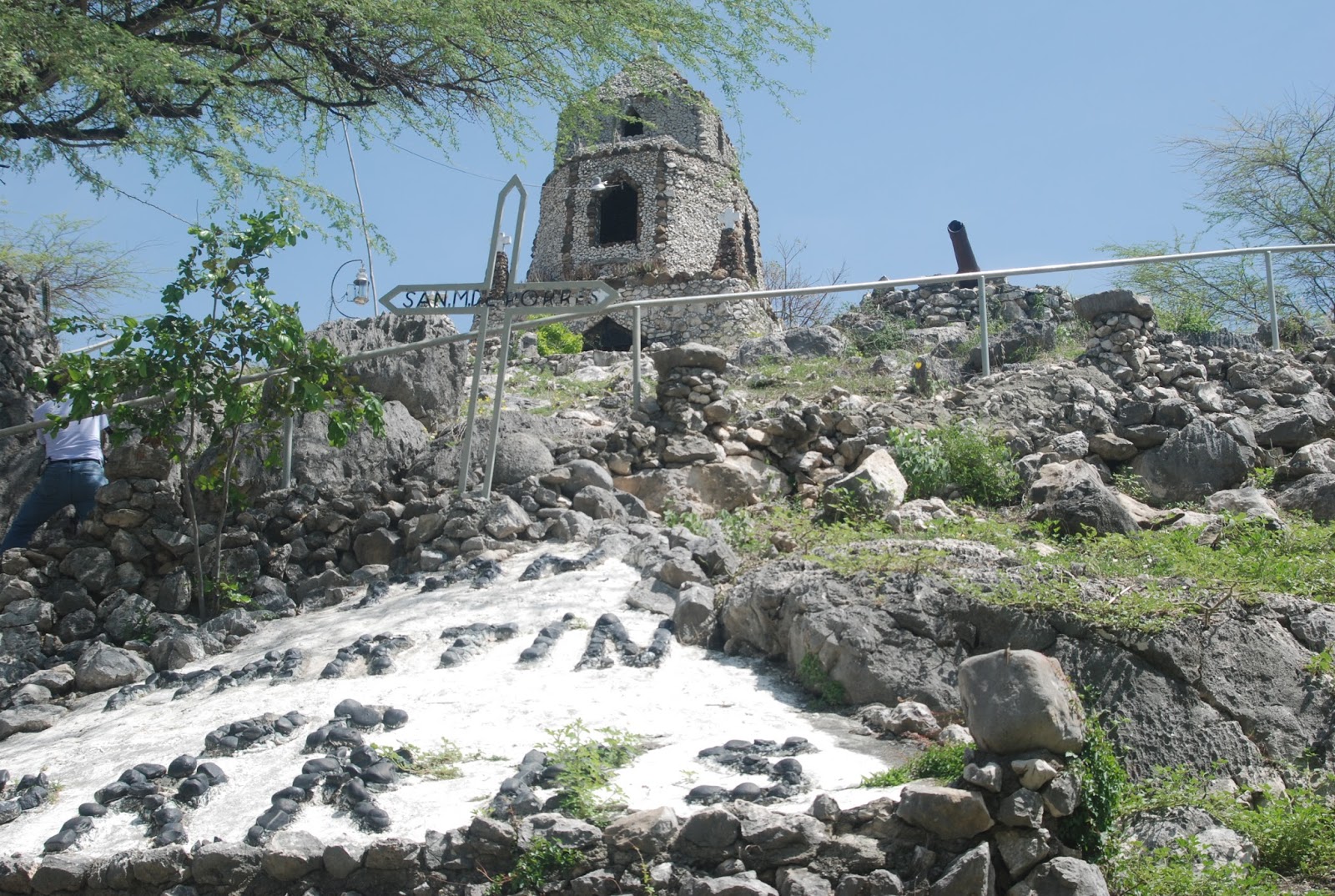 Son muchos los atractivos que podemos disfrutar en Baní pero aquí les dejo con una panorámica de la ciudad y 2 tomas fotográficas de un lugar excepcional…El Santuario San Martín de Porres, situado en Las Tablas de Baní. Este fue construido en piedra procedentes de su entorno natural y en su interior encontramos una capilla adornada de preciosas pinturas y motivos religiosos. Desde allí se nos regala un escenario perfecto del entorno natural y la historia que el lugar nos muestra.