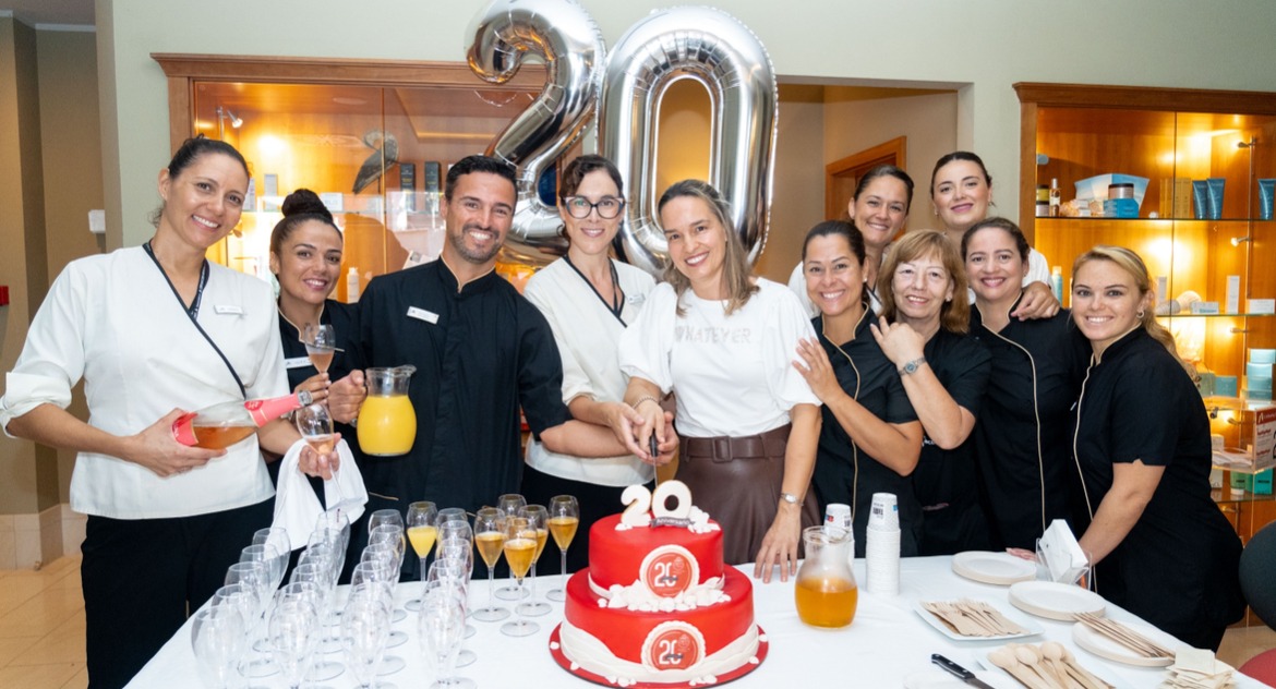 El éxito alcanzado por Om Thalasso Villa del Conde sería inconcebible sin el esfuerzo y la dedicación de su equipo, desde la dirección del centro, pasando por los terapeutas, el personal de recepción, hasta el servicio técnico y de limpieza. Por este motivo, para celebrar este especial cumpleaños, el centro ha querido compartir una tarta conmemorativa y brindar junto con el grupo humano del hotel Lopesan Villa del Conde Resort & Thalasso.