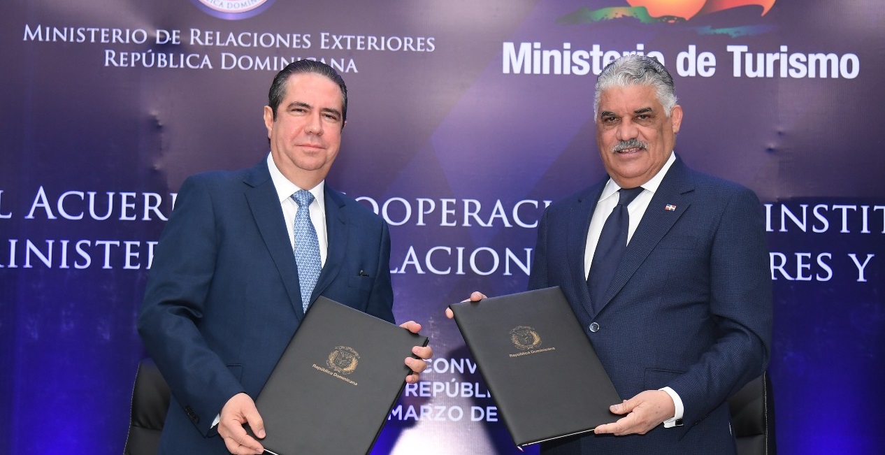 Santo Domingo. – Los ministerios de Relaciones Exteriores (MIREX) y de Turismo (MITUR) suscribieron un acuerdo de cooperación interinstitucional que permitirá la promoción turística de la República Dominicana utilizando como plataforma las oficinas del Servicio Exterior dominicano esparcidas por el mundo.