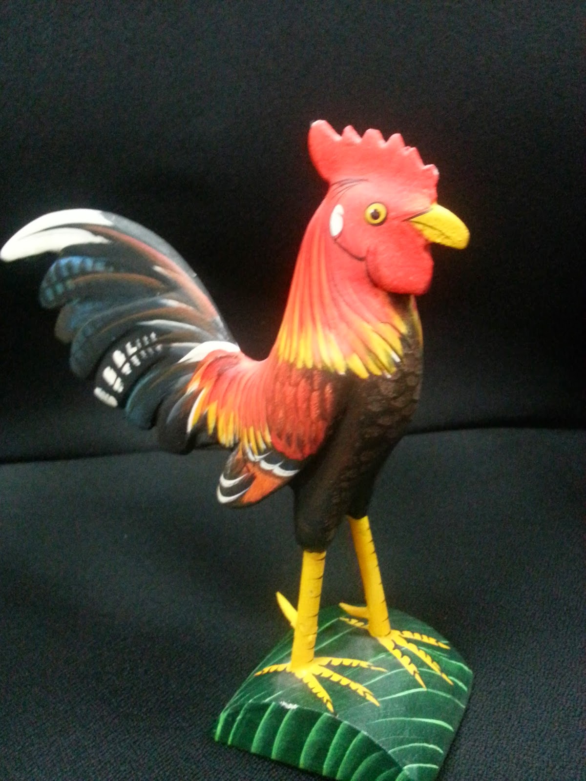 Les cuento que contamos con las tallas de aves de Cambita, San Cristobal, Estas se iniciaron con los gallos que realizó a mediados de los años sesenta Erasmo Puello, ya fallecido, quien dejó el legado a sus hijos y ha sido adoptado por otros artesanos de esa comunidad.